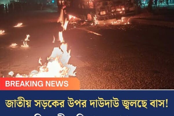 জাতীয় সড়কের উপর দাউদাউ জ্বলছে বাস!বিধ্বংসী অগ্নিকাণ্ড ধুলাগড়ে