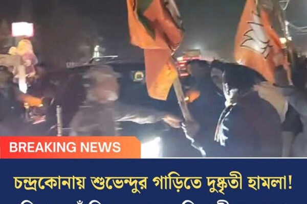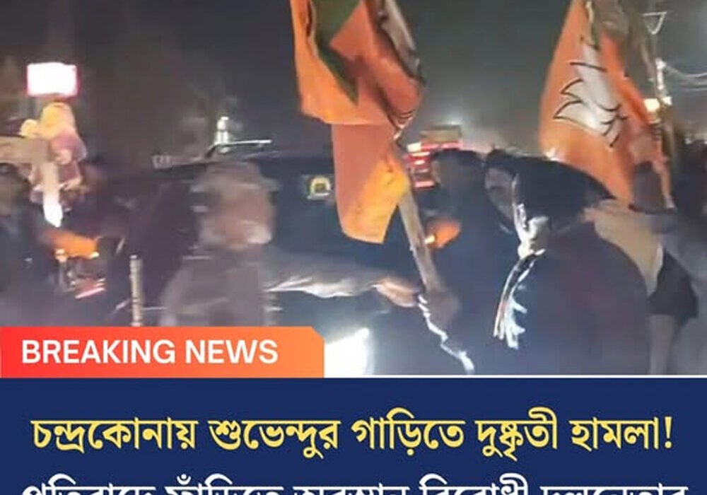 চন্দ্রকোনায় শুভেন্দুর গাড়িতে দুষ্কৃতী হামলা! প্রতিবাদে ফাঁড়িতে অবস্থান বিরোধী দলনেতার
