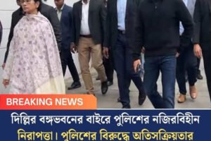 দিল্লির বঙ্গভবনের বাইরে পুলিশের নজিরবিহীন নিরাপত্তা। পুলিশের বিরুদ্ধে অতিসক্রিয়তার অভিযোগ করলেন মুখ্যমন্ত্রী মমতা বন্দ্যোপাধ্যায়।