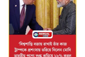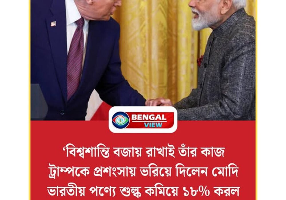 ‘বিশ্বশান্তি বজায় রাখাই তাঁর কাজ ট্রাম্পকে প্রশংসায় ভরিয়ে দিলেন মোদি ভারতীয় পণ্যে শুল্ক কমিয়ে ১৮% করল আমেরিকা