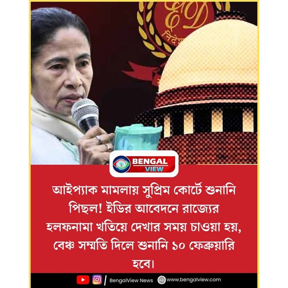আইপ্যাক মামলায় সুপ্রিম কোর্টে শুনানি পিছল! ইডির আবেদনে রাজ্যের হলফনামা খতিয়ে দেখার সময় চাওয়া হয়, বেঞ্চ সম্মতি দিলে শুনানি ১০ ফেব্রুয়ারি হবে।