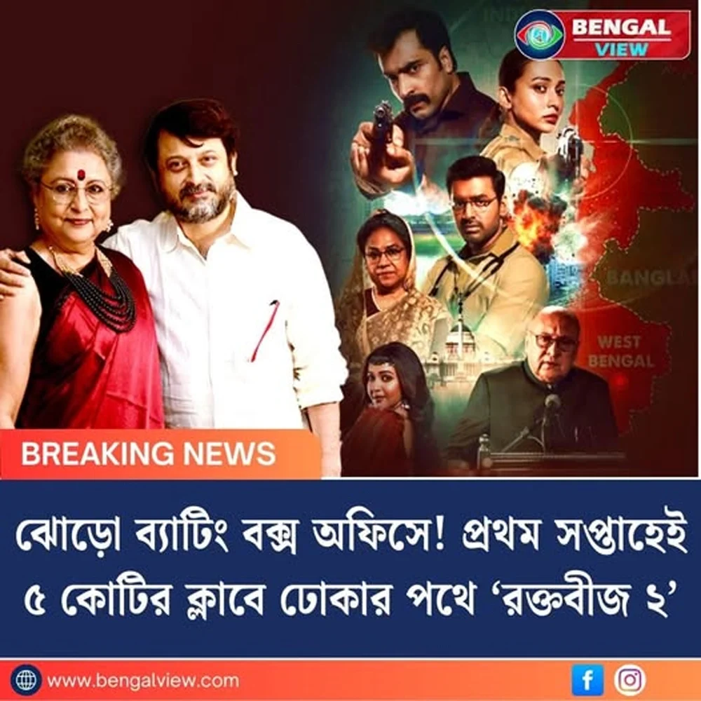 মুক্তির পর থেকেই দাপট দেখাচ্ছে শিবপ্রসাদ মুখোপাধ্যায় ও নন্দিতা রায়ের অ্যাকশন-থ্রিলার ‘রক্তবীজ ২’। দর্শকের প্রত্যাশা পূরণ করে প্রথম সপ্তাহেই ছবিটির আয় ছুঁয়েছে ৪.৫৫ কোটি টাকা, অর্থাৎ ৫ কোটির মাইলফলক ছোঁয়ার পথে।