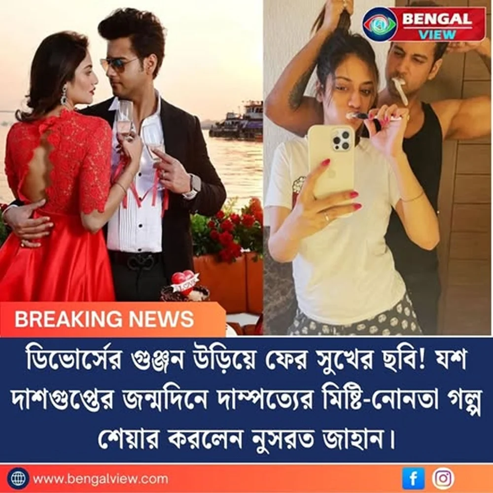 কিছুদিন আগেই তাঁদের সম্পর্ক ভাঙনের খবর ছড়িয়ে পড়েছিল টলিপাড়ায়। কিন্তু পুজোর মরশুমে একসঙ্গে দেখা দিয়ে সেই জল্পনায় জল ঢেলে দিয়েছিলেন যশ-নুসরত। এবার যশের জন্মদিনে এক বিশেষ বার্তায় সম্পর্কের অন্তরঙ্গ দিক নিজেই প্রকাশ করলেন অভিনেত্রী।