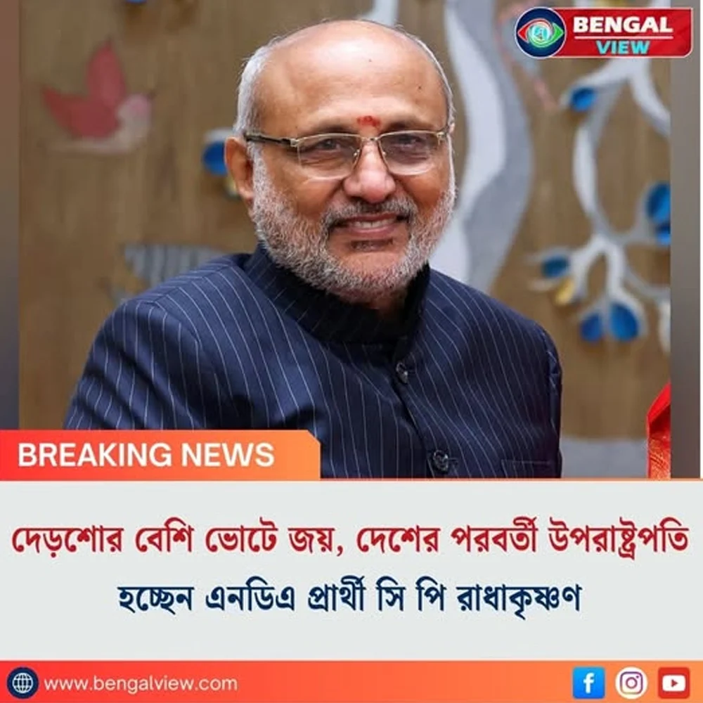 দেড়শোর বেশি ভোটে জয়, দেশের পরবর্তী উপরাষ্ট্রপতিহচ্ছেন এনডিএ প্রার্থী সি পি রাধাকৃষ্ণণ