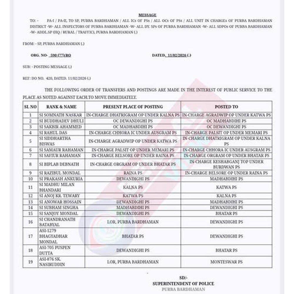 Uncategorizedপূর্ব বর্ধমান জেলা পুলিশে রদবদল। আসুন দেখে নেয়া যাক কার পোস্টিং কোথায় হল। bengal View9 hours ago00 mins Post navigation Previous: গুণমান পরীক্ষায় বড় ধাক্কা! আমুল ও মাদার ডেয়ারির দুধে মিলল ক্ষতিকর ব্যাকটেরিয়ার উপস্থিতিNext: রাহুল পাশে এসে দাঁড়াতেই তড়িঘড়ি পালালেন মোদির মন্ত্রীরা! সংসদের ‘অবিশ্বাস্য’ ভিডিওয় শোরগোল Leave a Reply Cancel replyYou must be logged in to post a comment.