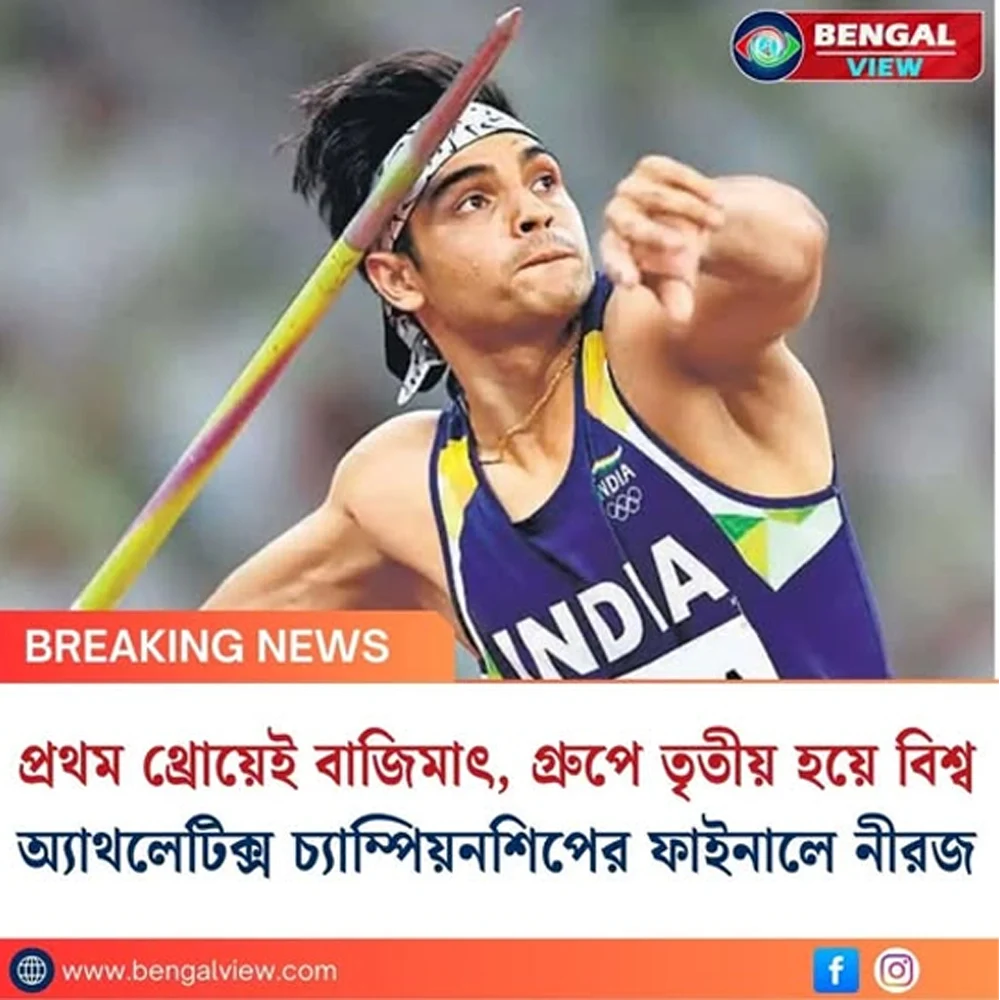 প্রথম থ্রোয়েই বাজিমাৎ, গ্রুপে তৃতীয় হয়ে বিশ্ব অ্যাথলেটিক্স চ্যাম্পিয়নশিপের ফাইনালে নীরজ