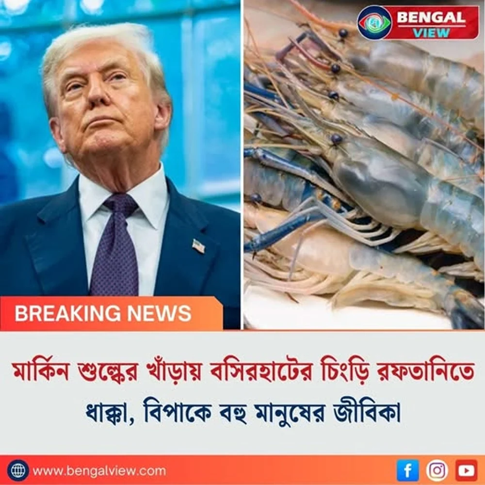মার্কিন প্রেসিডেন্ট ডোনাল্ড ট্রাম্পের নতুন শুল্কনীতিতে ধাক্কা খেল বসিরহাটের চিংড়ি রফতানি। এতদিন যেখানে ২৫ শতাংশ শুল্কে ভারতীয় চিংড়ি আমেরিকার বাজারে পৌঁছত, সেখানেই ২৭ অগস্ট থেকে কার্যকর হয়েছে দ্বিগুণ অর্থাৎ ৫০ শতাংশ শুল্ক। এর জেরে চিংড়ি ব্যবসায়ীরা কার্যত রফতানি বন্ধ করতে বাধ্য হচ্ছেন। ফলত মৎস্যজীবী, ব্যবসায়ী থেকে শুরু করে প্যাকেজিং শ্রমিক প্রত্যক্ষ ও পরোক্ষভাবে জড়িত কয়েক লক্ষ মানুষের জীবিকাই এখন টালমাটাল।