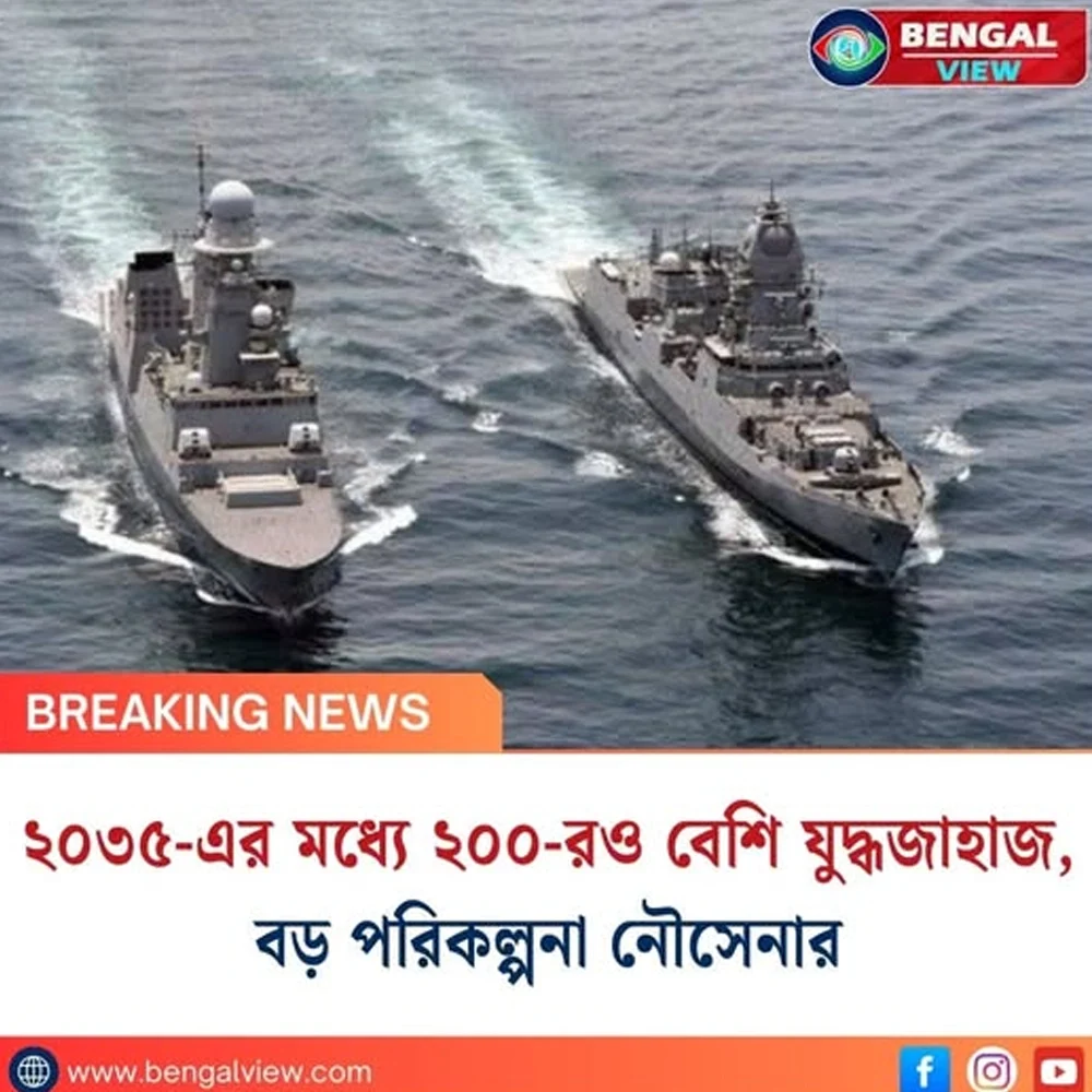 ভারতীয় নৌবাহিনী আগামী এক দশকের মধ্যে তাদের সামুদ্রিক শক্তি আরও দৃঢ় করতে চলেছে। লক্ষ্য নির্ধারণ করা হয়েছে—২০৩৫ সালের মধ্যে বহরে অন্তর্ভুক্ত করা হবে ২০০–এর বেশি যুদ্ধজাহাজ ও সাবমেরিন। এক নৌসেনা আধিকারিক জানিয়েছেন, ইতিমধ্যেই দেশীয় শিপইয়ার্ডে নির্মাণাধীন রয়েছে ৫৫টি যুদ্ধজাহাজ ও সাবমেরিন। পাশাপাশি প্রতিরক্ষা মন্ত্রক আরও ৭৪টি জাহাজ তৈরির অনুমোদন দিয়েছে, যদিও সেই প্রকল্পের চুক্তি প্রক্রিয়া এখনও বাকি।
