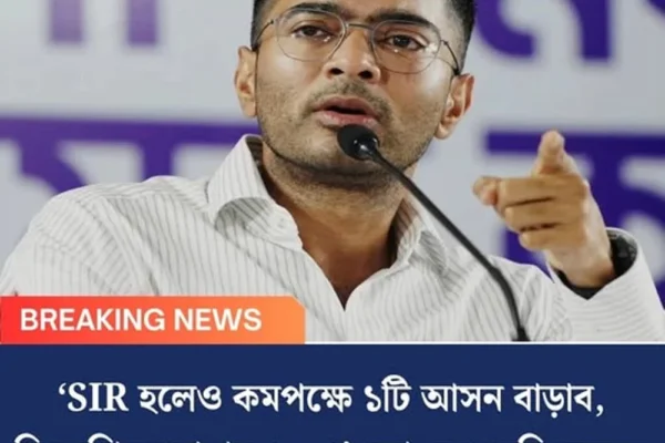 ২০২৬-এর বিধানসভা ভোটের আবহেই রাজ্যে ভোটার তালিকার বিশেষ নিবিড় সংশোধনের (SIR) কথা ঘোষণা করেছে জাতীয় নির্বাচন কমিশন। এই নিয়ে রাজ্য রাজনৈতিক মহলে তোলপাড়। যোগ্য ভোটারদের নাম বাদ দেওয়ার চক্রান্ত করা হচ্ছে, এই অভিযোগ তুলে সরব শাসক দল তৃণমূল। কিন্তু SIR সত্ত্বেও আসন্ন নির্বাচনে তৃণমূলের আসন সংখ্যা বাড়বে, আত্মবিশ্বাসী তৃণমূলের সর্বভারতীয় সাধারণ সম্পাদক অভিষেক বন্দ্যোপাধ্যায়।