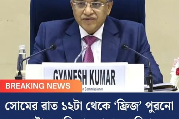 দ্বিতীয় পর্বে বাংলা-সহ ১২টি রাজ্য এবং কেন্দ্রশাসিত অঞ্চলে ভোটার তালিকার নিবিড় সংশোধনী বা এসআইআর শুরু হচ্ছে। বাংলায় কাল থেকেই শুরু SIR। বাংলা-সহ ১২ রাজ্যে সোমবার রাতেই ‘ফ্রিজ’ করা হচ্ছে ভোটার তালিকা! সোমবার দিল্লির বিজ্ঞান ভবনে সাংবাদিক বৈঠকে ঘোষণা করলেন দেশের মুখ্য নির্বাচন কমিশনার জ্ঞানেশ কুমার।